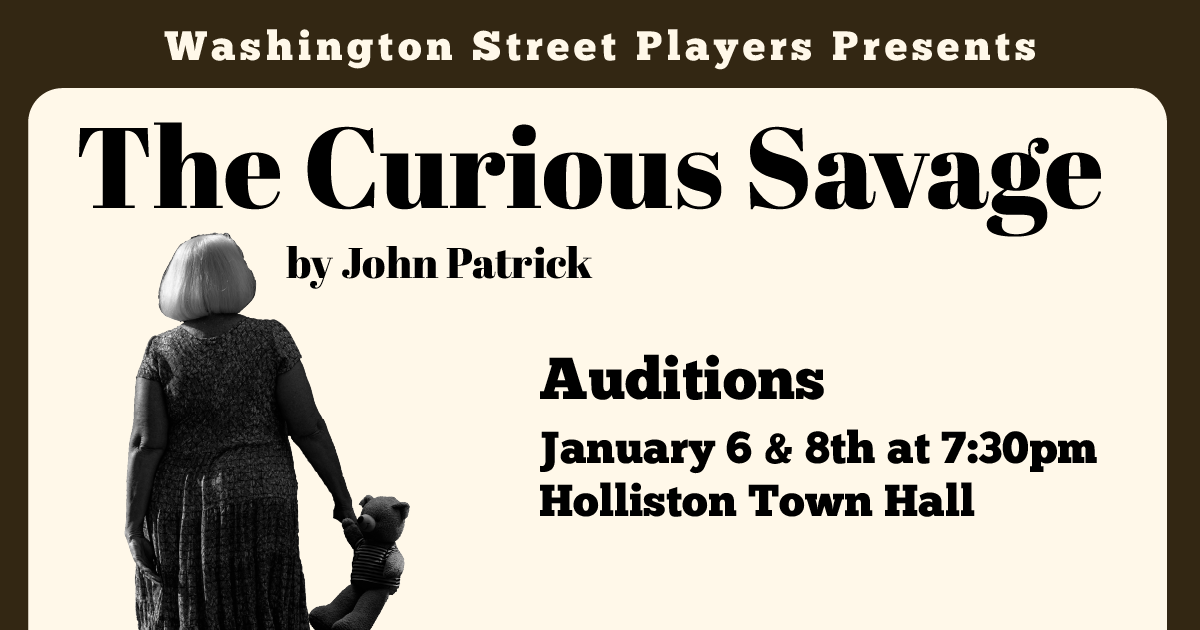 Auditions will be held on January 6th and 8th at 7:30 at Holliston Town Hall